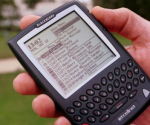 Blackberry Für die Namensgebung des drahtlosen E-Mail-Gerätes nahm die Firma Research in Motion 2001 ein Marken-Lexikon zu Hilfe: Die Unternehmensberater von RIM kamen vom Wort «E-Mail» ab und suchten stattdessen nach einen Begriff, der Freude hervorruft. Da die kleinen Drucktasten an dem Gerät an Obstkerne erinnern, kam das Team zum Wort «strawberry» (Erdbeere). Als Ersatz für die langsam klingende Silbe «straw» schlugen die Experten die schwarze Farbe des Gehäuses vor - so wurde daraus der «Blackberry». (Foto: cio.com)