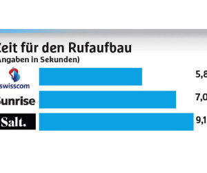 Swisscom im Vergleich zu Sunrise und Salt beim Rufaufbau