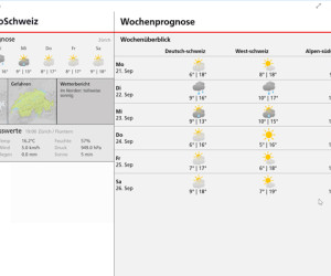 MeteoSchweiz: das Wetter immer in Sichtweite Die «MeteoSchweiz»-App gibt es sowohl für Android als auch für iOS. Wer bezüglich Wetter immer auf dem Laufenden sein will, sollte die praktische App auch unter Windows 10 installieren. Besonders praktisch sind die Wetterkarten und der Regenradar