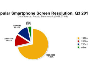 Display-Auflösung: Vor nicht allzu langer Zeit waren Full-HD-Displays noch der Flaggschiffklasse vorbehalten, mittlerweile finden sich die hochauflösenden Panels aber auch in der Mittelklasse. Unter den AnTuTu-Nutzern sind sogar 71,62 Prozent mit Full HD unterwegs
