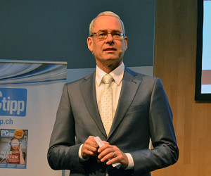 Moderator Hansjörg Honegger sprach an der Konferenz «Industrie 4.0» auch kritische Themen an