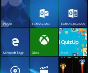 Der neue Startbildschirm - Die App-Kacheln sind nur noch halbtransparent. Das Hintergrundbild erstreckt sich von links nach rechts über den ganzen Anzeigebereich