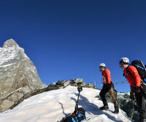 Die beiden Alpinisten Stephan Siegrist und David Fasel machen sich bereit für die Besteigung des Matterhorns über den Hörnligrat