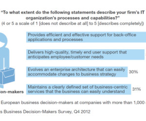 Die Mindestanforderungen Allzuviel traut das Business der IT augescheinlich nicht zu: Der Forrester-Studie zufolge würden nur 30 Prozent unterschreiben, dass die Enterprise-Architektur Veränderungen der Geschäftsstrategie flexibel abbilden kann. Hier kann der CIO auf der technischen Ebene punkten. Aber das ist nur der Anfang.