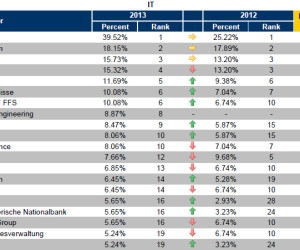 Nebst den Erstplatzierten dürfen auch SBB und Zühlke mit den Ergebnissen sehr zufrieden sein. Nestlé dagegen scheint als IT-Arbeitgeber nicht mehr so geschätzt zu werden