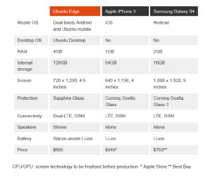 Das erste Open-Source Smartphone "Ubuntu Edge" soll etwas ganz Grosses und ganz Anderes werden: doppelt so viel Speicher (128 GByte) wie das iPhone 5, doppelt so viel RAM (4 GByte) wie das Galaxy S4, leistungsfähigere Batterien, dual-boot-fähig, mit Saphir-Kristall-Display und Stereo-Kopfhörern - und das alles auch noch preiswerter als die Geräte der Platzhirschen Samsung und Apple (siehe Grafik unten). Das neue Ubuntu Edge soll 695 US-Dollar kosten und im Mai 2014 auf den Markt kommen. Es ist Smartphone und PC in einem Gerät (Computerworld berichtete). Ubuntu Edge kann sowohl mit Ubuntu Phone OS als auch mit Android gestartet werden und lässt sich durch den Anschluss an einen Monitor in einen vollwertigen PC verwandeln. "Ubuntu Edge ist das ultimative Konvergenzegrät und stellt die bestehenden Konzepte für PCs und Smartphones auf den Prüfstand", sagt Mark Shuttleworth, Gründer des Ubuntu-Entwicklers Canonical.