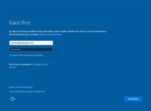 Für einige Funktionen wie die «Sprachassistentin» Cortana, personalisierte Suche oder Apps ist ein Microsoft-Konto zwingend. Falls Sie unsicher sind, starten Sie mit einem lokalen Konto. Beim Gebrauch von Lösungen von Computerproblemen merken Sie schnell, ob Sie ein Microsoft-Konto benötigen oder nicht. Sie können im Nachhinein Ihr lokales Konto rasch in den Einstellungen in ein Microsoft-Konto umwandeln. Vielleicht haben Sie auch schon ein Microsoft-Konto; in diesem Fall melden Sie sich gleich mit diesen Benutzerdaten an.