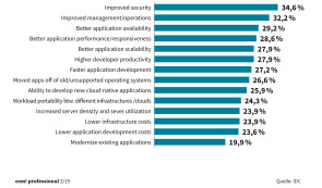 Neben neuen Anwendungen lassen sich auch vorhandene Applikationen über Container bereitstellen. Nach Angaben des Beratungshauses IDC entfallen von den Container-Anwendungen an die 54 Prozent auf solche Legacy-Anwendungen, 46 Prozent auf neue Software. Ein Grund dafür ist, dass etwa drei Viertel der Bestandsanwendungen ohne grössere Änderungen am Code für Container fit gemacht werden können.