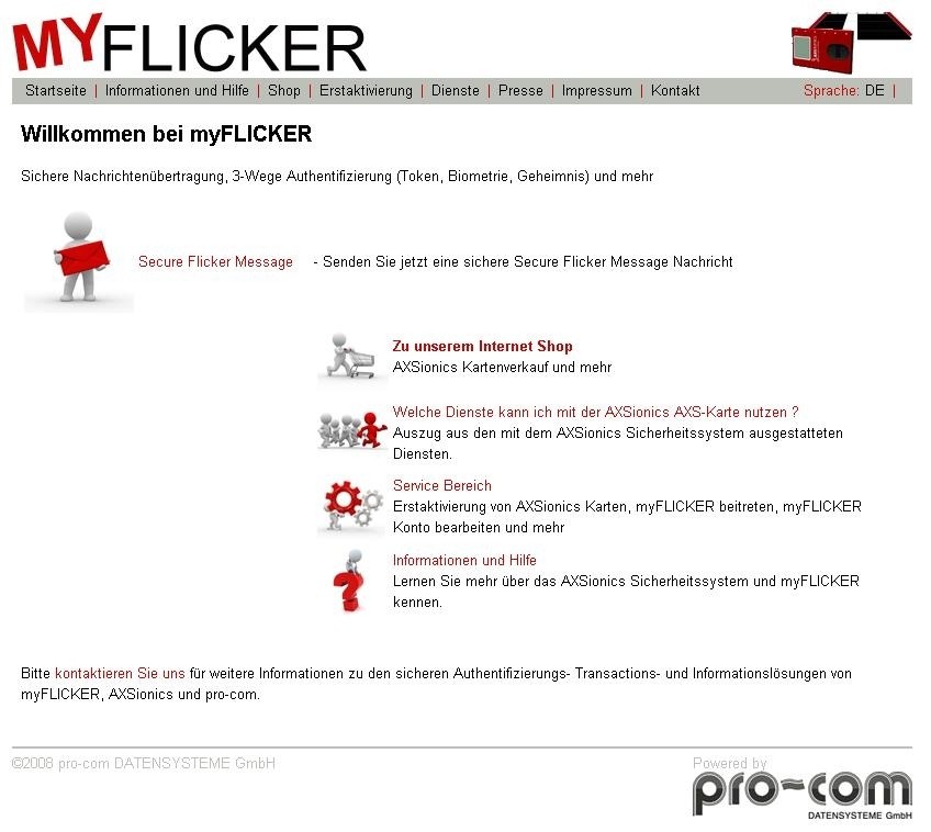 Pro-com übernimmt den Vertrieb der gesamten AXSionics-Produktpalette in Deutschland. Im Zuge dessen bietet das Unternehmen über ein Internetportal Service-Leistungen rund um die AXSionics-Sicherheitsplattform und die AXS-Karte, einen biometrischen Internetpass, an. Auf dem Onlineportal können Anwender neben der Erstaktivierung der Karte, auch gratis verschlüsselte Nachrichten über einen Secure-Messaging-Dienst an andere Nutzer übertragen.