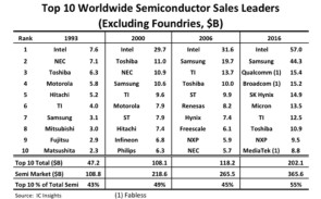 Kampf der Chip-Giganten: Die Marktbeobachter von IC Insights prognostizieren, dass Samsung mit den Zweitquartalsergebnissen von 2017 erstmals Intel als grössten Chip-Hersteller vom Thron stossen wird. Samsung profitiert im Moment von der riesigen Nachfrage nach DRAM und NAND Flash. IC Insights glaubt, dass sich die hohen Marktpreise zwar im zweiten Quartal 2017 langsam abkühlen, aber es bestehe nach wie vor ein enormes Nachfragepotenzial. Im DRAM-Markt rechnen die Analysten weiterhin mit einer Preissteigerung von 39 Prozent. Bei Flash-Speicher wird eine Preissteigerung von 25 Prozent erwartet.