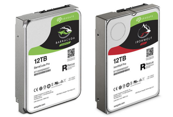 Seagate hat neue Festplatten mit einer Kapazität von 12 TB für Privatanwender vorgestellt. Die Version der BarraCuda Pro, die bei uns bereits zu einem Strassenpreis von 525 Franken gelistet wird, arbeitet mit 7200 Umdrehungen pro Minute und kommt mit einem 256-MB-Cache. Speziell für NAS bietet Seagate auch zwei 12-TB-Festplatten der Serie IronWolf an. Die Pro-Version ab 538 Franken ist für KMU-NAS mit bis zu 16 Laufwerksschächten gedacht, die reguläre IronWolf für Privatanwender mit bis zu acht NAS-Einschüben ab 477 Franken. Auf die Pro-Version gewährt Seagate fünf Jahre Garantie.
