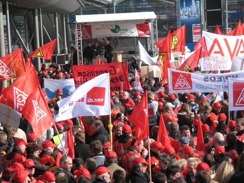 Gewerkschaftsvertreter von IG Metall und Verdi machten gegen die Sparpläne der Arbeitgeber in profitablen Unternehmen mobil. Sie beklagten vor allem die Tarifflucht vieler grosser IT-Anbieter. Bei EDS kämpfen die Arbeitnehmervertreter seit einem dreiviertel Jahr um einen Haustarifvertrag. Anfangs ging es ihnen um mehr Gehalt, seit der HP-Übernahme müssen sie sich gegen drohende Entlassungen stemmen. Bei Avaya sieht es ähnlich aus. Kurz nachdem der Hersteller von Telekommunikationslösungen von Finanzinvestoren übernommen wurde, stiegen die neuen Eigentümer aus dem Flächentarifvertrag aus. In Hannover trafen sich die Avaya-Betroffenen bereits zum fünften Warnstreik. Die EDS-Mitarbeiter haben zum dritten Mal die Arbeit nieder gelegt.