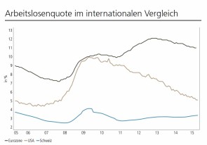 Die Löhne in der Schweiz steigen im nächsten Jahr aufgrund der konjunkturellen Lage nur leicht, sagt die UBS. An ihrer alljährlichen Lohnumfrage beteiligten sich 357 Schweizer Unternehmen, die mehrheitlich keine allzu rosige Zukunftsprognose abgaben. 64 Prozent der befragten Unternehmen erwarten eine Stagnation der konjunkturellen Entwicklung, letztes Jahr waren es noch 55 Prozent. 11 Prozent rechnen gar mit einer Rezession, 2015 befürchteten diese nur vier Prozent der Firmen. Entsprechend erwarten 65 Prozent der Firmen, dass die Arbeitslosenquote steigen wird, letztes Jahr glaubten dies erst 23 Prozent. Die Arbeitslosenquote dürfte nach wie vor deutlich unter dem Schnitt der Eurozone bleiben.