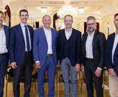 Bundesrätin Simonetta Sommaruga mit Martin Bürki von Ericsson (Mitte) und Christian Grasser von Asut