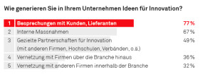 Es gehe darum kreativ zu sein, quer zu denken und über den Tellerrand zu schauen, so Küng, also beispielsweise Ideen und Modelle aus anderen Branchen zu adaptieren. Dieses Potential schöpfen die Befragten mehrheitlich noch nicht aus (vgl. Grafik 3). So arbeite erst die Hälfte der KMU mit gezielten Innovationspartnerschaften und nur rund ein Drittel vernetzt sich mit anderen Firmen innerhalb der eigenen Branche oder darüber hinaus.