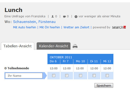 Der Schweizer Terminplaner Doodle ermöglicht jetzt das Hinzufügen einer Lokalität via Search.ch. Auf diese Weise kann beispielsweise bei einer Terminumfrage zu einem Essen das Restaurant gleich zur Umfrage hinzugefügt werden. Die Lokalität kann dann auf der Karte von search.ch betrachtet werden, zudem stehen auf Doodle Links für die Routenplanungsfunktion des Suchportals bereit. Im Rahmen der Zusammenarbeit zwischen Doodle und dem Schweizer Suchportal wird auch der bisherige, eigene Terminplanungsdienst von Search.ch durch Doodle ersetzt. Die Partnerschaft der beiden helvetischen Dienste fusst auf der Beteiligung des Medienkonzerns Tamedia an beiden Firmen.