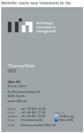 Thomas Wüst, CEO und Gründer der ti&m sagt: „Wir freuen uns darauf, gemeinsam mit unseren Kunden unter dem neuen Namen ti&m AG unsere Erfolgsgeschichte fortschreiben zu dürfen“.