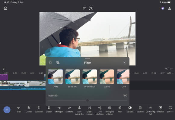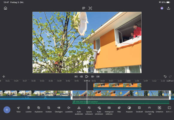 An Video-Editoren herrscht auf dem iPad kein Mangel, vom einfachen iMovie über das hervorragend ausbalancierte Final Cut Pro (go.pctipp.ch/3471) bis hin zum ausgewachsenen, kostenlosen Davinci Resolve für den Profi (go.pctipp.ch/3472). Entsprechend moderat fällt die Preisgestaltung aus: Sämtliche Funktionen von Adobe Premiere lassen sich ohne Einschränkungen oder Wasserzeichen kostenlos nutzen. Das Abo für 8 Franken monatlich oder 70 Franken jährlich benötigt nur, wer den Cloud-Dienst und/oder Adobes generative KI Firefly nutzen möchte.