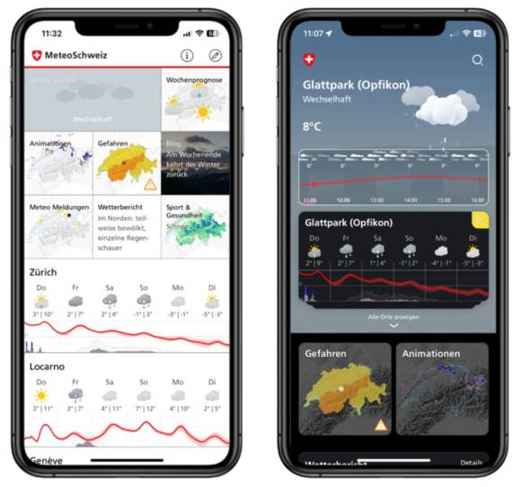 Seit der Lancierung 2013 ist die MeteoSwiss App die beliebteste gratis Wetter-App in der Schweiz: Sie läuft auf 4,8 Millionen Geräten. Pro Tag informieren sich hier zwischen 700'000 und 1,8 Millionen Nutzerinnen und Nutzer – je nach Wetter- und Warnlage – über Wetter und Klima. Obwohl im Hintergrund viele Verbesserungen liefen und viele zusätzliche Inhalte in die App integriert wurden, erscheint die App schon seit 2016 im gleichen Gewand.