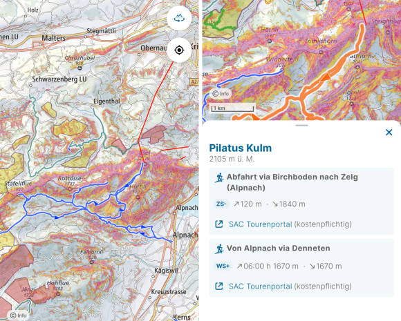 Nutzer können auch die Geschwindigkeit oder das Aktivitätsprofil (zum Beispiel Schneeschuh, Skitour, Wanderung) anpassen. Das ist hilfreich für die persönliche Einschätzung der benötigten Zeit. Dank der GPS-Funktion zeigt die App während der Tour Ihre aktuelle Position an – ein Vorteil, wenn bei Nebel oder Schneetreiben die Orientierung schwerfällt.