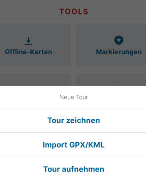 Praktisch an der App: Touren lassen sich zwischen verschiedenen Geräten per GPX- und KML-Datei oder Link teilen. So können Sie zum Beispiel auf einem grösseren Tablet bequem eine Tour planen und später auf dem Smartphone öffnen.