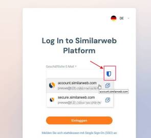 Bitwarden-Erweiterung im Webbrowser. Jetzt suchen Sie die Webseite, auf der Sie sich einwählen möchten. Per Klick öffnet sich die Webseite mit dem Log-in-Fenster. Im Anmeldefenster wird ein kleines, blau-weisses Schild angezeigt. Das bedeutet, dass ein Passwort verfügbar ist Bild 6. Per Klick loggen Sie sich bequem ein.