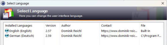 Nach der Installation ist das Tool in englischer Sprache. Kein Problem: Sie sollten sich gleich die passende deutsche Sprachdatei besorgen. Unter Ansicht (View) und Sprache ändern (Change Language) sowie Get more Languages landet man im Web bei den Sprachdateien, Bild 7. Dort laden Sie sich Deutsch (KeePass-2.59-German.zip) herunter. Gehen Sie noch einmal zum Punkt Change Language und wählen Sie dort Open Folder. In dieses Verzeichnis kopieren Sie den Inhalt der ZIP-Datei (German.INGX). Nun besuchen Sie erneut View/Change Language und wählen dort die Option Deutsch aus. Nach einem Programmneustart ist die Sprache auf Deutsch umgestellt.
