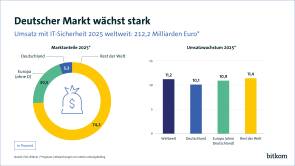Trotz des robusten Wachstums zeigt der internationale Vergleich: Deutschland läuft der globalen Entwicklung hinterher. Der weltweite Markt für IT-Sicherheit wächst 2025 um 11,2 Prozent auf 212,2 Milliarden Euro und damit schneller als hierzulande. Auch die anderen europäischen Länder steigern ihre Ausgaben im Durchschnitt um 10,9 Prozent, während der Rest der Welt sogar um 11,4 Prozent zulegt. Der deutsche Marktanteil am globalen IT-Sicherheitsmarkt beträgt lediglich 5,3 Prozent, das restliche Europa kommt zusammen auf 20,5 Prozent.