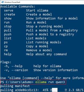 Bild 8: Um ein Modell auszuführen, geben Sie ollama run ein, gefolgt vom Modellnamen