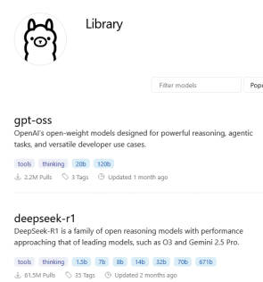 Bild 9: Bei Ollama sehen Sie auf einen Blick, welche Modellvarianten zur Verfügung stehen