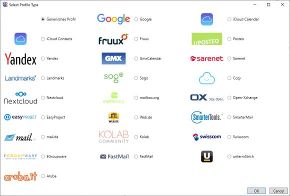 Bild 2: Sie können im CalDav Synchronizer unter zahlreichen Providern auswählen oder die entsprechenden Daten selbst eingeben