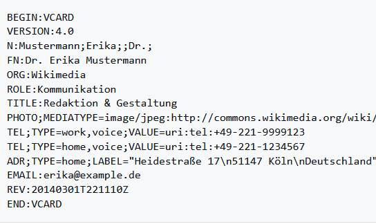 Bild 8: Ein verbreitetes Format zum Umgang mit Kontaktdaten ist das standardisierte vCard 4.0
