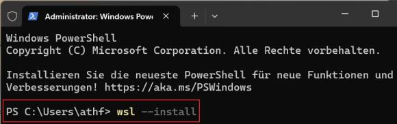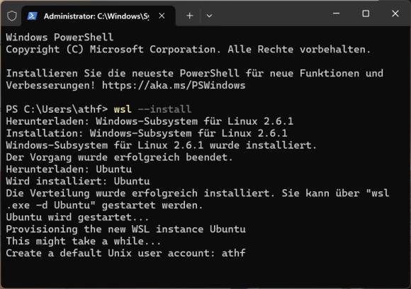 Bild 3: Ein Befehl genügt, um das Windows-Subsystem für Linux (WSL) inklusive Ubuntu einzurichten