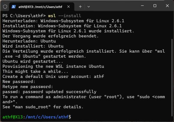 Bild 6: Nach dem Vergeben des Passworts schliesst WSL die Installation ab