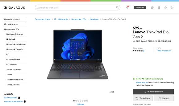 Bild 8: Taugliche Notebooks mit Windows 11 bekommen Sie in der Regel schon für weniger als 700 Franken, gesehen bei galaxus.ch