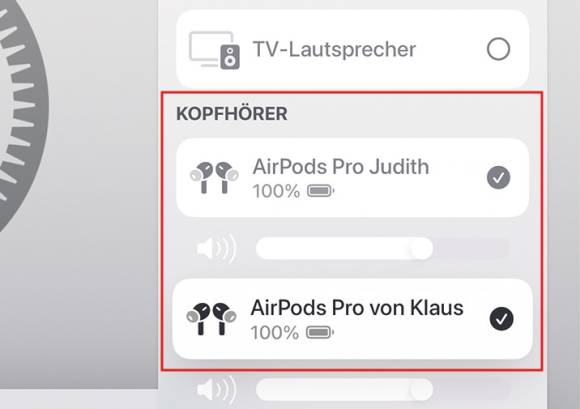 Bild 2: Die Lautstärke lässt sich getrennt regeln, vorzugsweise an den AirPods