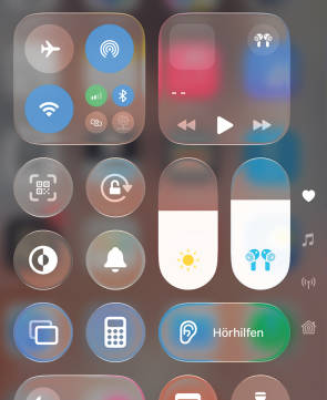 Den schnellsten Zugriff erhalten Sie jedoch über das Kontrollzentrum, Bild 2. Hier finden Sie die schnellen Einstellungen für die Lautstärke und – falls eingerichtet – die Hörhilfen. Letztere sind wiederum in verschiedene Kategorien unterteilt. Die wichtigsten Anpassungen werden mit einem Tippen auf Hörunterstützung sichtbar.