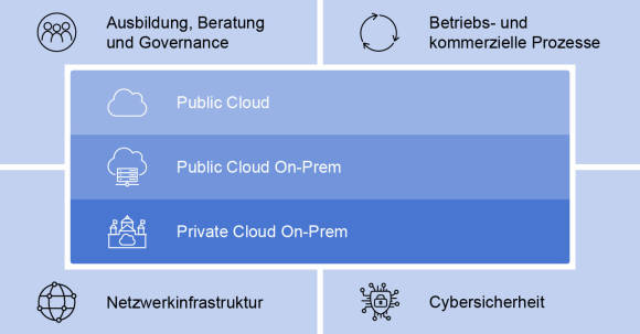 Über die "Swiss Government Cloud" sollen künftig sowohl Public- als auch Private-Cloud-Leistungen bezogen werden können. Der Bund spricht dabei von einem Hybrid-Multi-Cloud-Ansatz. "Multi" bedeutet, dass Cloud-Dienste von mehreren Public-Cloud-Anbietern zur Verfügung stehen.