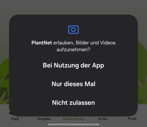 Für die Identifikation können Sie direkt die Kamera des Smartphones verwenden. Werden Sie dabei nach der Freigabe gefragt, wählen Sie, wenn möglich Nur dieses Mal aus, Bild 4. So hat die Anwendung nicht permanenten Zugriff auf Ihre Kamera.