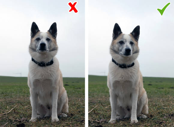 Fotos wirken dynamischer, wenn das Tier nicht direkt in die Kamera schaut, sondern leicht vorbei, Bild 9. So entsteht Spannung, als ob Hund oder Katze gerade etwas erblickt hätten.