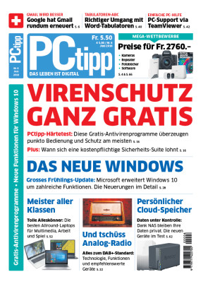 Den vollständigen Artikel finden Sie im PCtipp 6/2016, der ab dem 25. Mai am Kiosk oder direkt über pctipp.ch als E-Paper erhältlich ist. Die Ausgabe erscheint zudem auch in der App «PCtipp E-Paper» für Android und iOS.