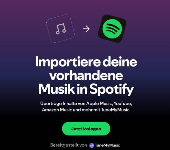 Um Wiedergabelisten aus anderen Musik-Streaming-Abos einzubinden, nutzt Spotify den darauf spezialisierten Anbieter TuneMyMusic. Ab sofort können Spotify-Kunden damit ohne grossen Aufwand Wiedergabelisten aus Amazon Music, Apple Music, Deezer, YouTube Music, Tidal, Napster, Soundcloud und vielen weiteren Diensten importieren.
