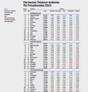 Ranking Mobiltelefonie, Internet Access und Festnetz für Privatkunden 2023