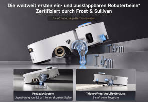 Und natürlich gibt es auch etliche KI-Funktionen: Spezielle Sensoren, die optisch und akustisch arbeiten, erkennen die Schmutzmenge auf dem Boden und passen entsprechend die Saugleistung sowie die Wasserzufuhr in Echtzeit dynamisch an. Im Endeffekt optimiert dies die Reinigungsleistung, schont den Akku und den Frischwasservorrat. Für die Navigation kommt ein präzises LiDAR-System zum Einsatz, das eine schnelle und exakte Kartierung der Wohnung ermöglicht. Beispielsweise, um Sperrzonen für den Wischvorgang (Teppiche etc.) oder Bereiche, die nicht befahren werden dürfen, festzulegen. Für den Teppichschutz hat das Gerät eine raffinierte Rollenanhebungsfunktion für Teppiche in Peto, kann aber auch zugleich Teppiche mit höherer Leistung reinigen (automatische Erkennung).