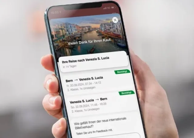Reisende können ab sofort auch internationale Billette und Reservierungen über SBB Mobile buchen. Damit kommt die SBB einem häufig geäusserten Bedürfnis nach und bietet einen zusätzlichen Verkaufskanal für die Buchung von internationalen Zugreisen.