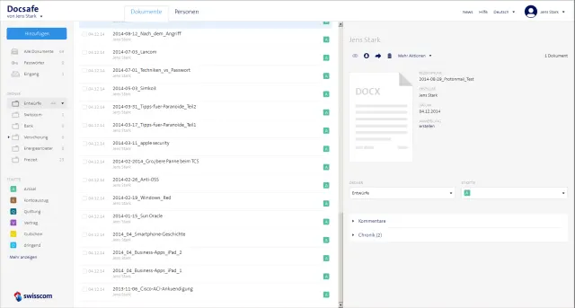 Mit der Sicherheit eines «Schweizer Bankschliessfachs» vergleicht die Betreiberin von Securesafe ihren Dienst. Allerdings lassen sich hier nur die allerwichtigsten Dokumente gratis ablegen, denn der Speicher ist auf 100 Megabyte beschränkt. Somit stimmt der Vergleich: in einem Bankfach bewahrt man meistens auch nicht ganze Bundesordner voller Unterlagen auf. Gedacht ist der Service denn auch, um etwa Passwörter zu hinterlegen und eine Kopie des eigenen Passes.