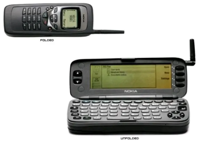 1997 präsentierte Nokia den Urahnen moderner Smartphones: den Nokia 9000i Communicator. In der Tat handelte es sich dabei um einen Mini-Computer inklusive Mobiltelefon. Die Rechenleistung kam von einem Prozessor, der vom Chip «Intel 386» abgeleitet war und auf 8 MB RAM zugreifen konnte. Ungewöhnlich was das Gehäuse, wurde die Muschel doch quer statt hochkant aufgeklappt. Auf dem Deckel befand sich das LCD, auf der Unterschale die QWERTZ-Tastatur.