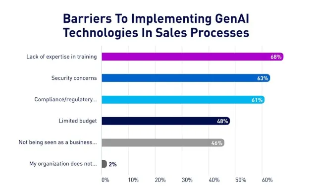 Die Implementierung stellt offenbar eine grosse Herausforderung bei der Einführung generativer KI dar: 92 % der Befragten rechnen mit Hürden. Dementsprechend werden Schulungen (68 Prozent) sowie Sicherheit (63 Prozent) und die Einhaltung gesetzlicher Vorschriften (61 Prozent) als drei der grössten Hindernisse aufgeführt.