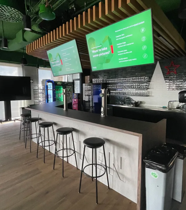 Die Projektverantwortlichen planten insgesamt aber recht grosszügig: Bereits rund eineinhalb Jahre vor der anvisierten Fertigstellung der neuen Büros war der IT-Dienstleister in den Prozess der Planung eingebunden. «Als Berater halfen wir bei der Analyse der Bedürfnisse von Heineken und berieten, wie der Raum genutzt und angepasst werden kann, um diese Bedürfnisse zu erfüllen», so NTT. Der Dienstleister präsentierte die verfügbaren Lösungen und gab Empfehlungen, führte Workshops durch und unterstützte den Testprozess.