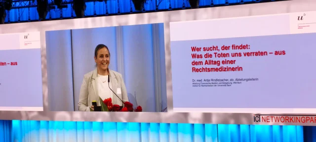 Ein überraschender, aber inhaltlich dichter Beitrag kam von Antje Rindlisbacher, Rechtsmedizinerin der Universität Bern. Ohne bilderlastige Unterstützung schilderte sie ihren Arbeitsalltag und machte deutlich, wie aufwändig und methodisch die Suche nach Fakten im realen Leben sein kann.